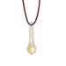 Pendant in hand-blown clear glass with a swirl of yellow; leather cord. Filled with Solar Logos essence.