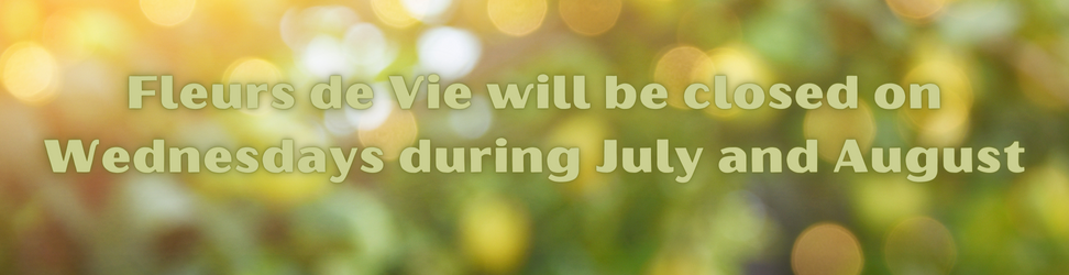 During the months of July and August, Fleurs de Vie will be closed on Wednesdays.