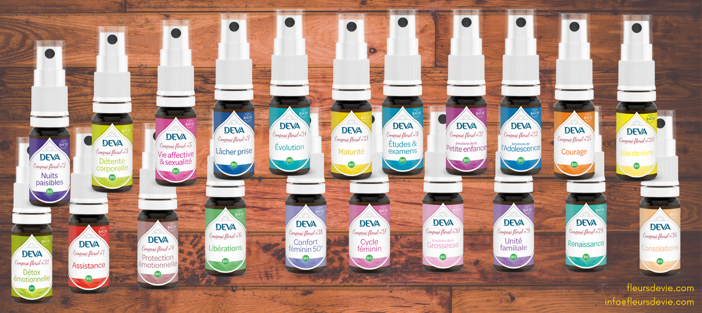 Une gamme de complexes des élixirs floraux contemporains Deva, préparées à partir de fleurs sélectionnées pour leurs bienfaits et leur grande synergie d’action pour accompagner la vie quotidienne et les moments-clés de l'existence. Il y a 21 complexes dans cette gamme qui existent en flacons pipettes et en vaporisateurs de 10ml.