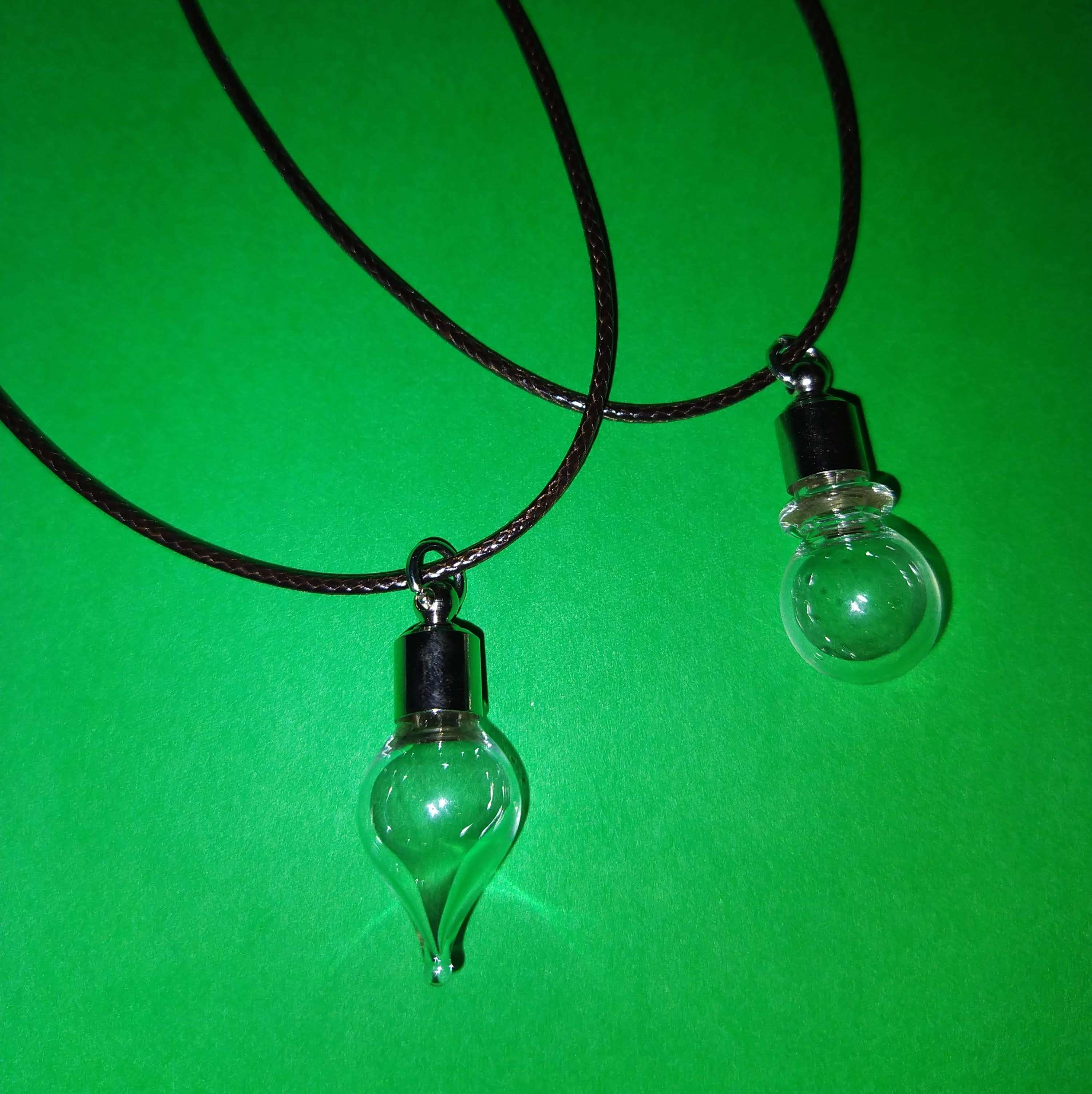 Nous avons récemment ajouté des pendentifs à remplir soi-même dans notre catalogue. Ils sont fournis avec deux mini-pipettes pour les remplir et un cordon en coton ciré (de couleur marron), le tout dans une pochette en organza. Vous les trouverez ici.