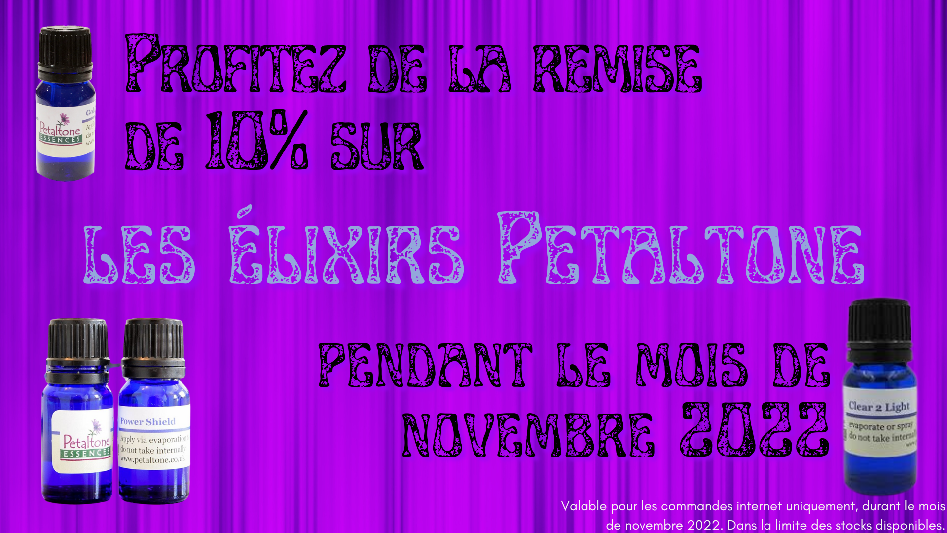 Créés par David Eastoe en 1992, les élixirs Petaltone proviennent de fleurs sauvages d’Angleterre et de Hawaii. Ils agissent par évaporation dans l’aura et les chakras. Ils travaillent à différents niveaux pour transformer les causes à l’origine des maladies physiques, mentales, émotionnelles et spirituelles.